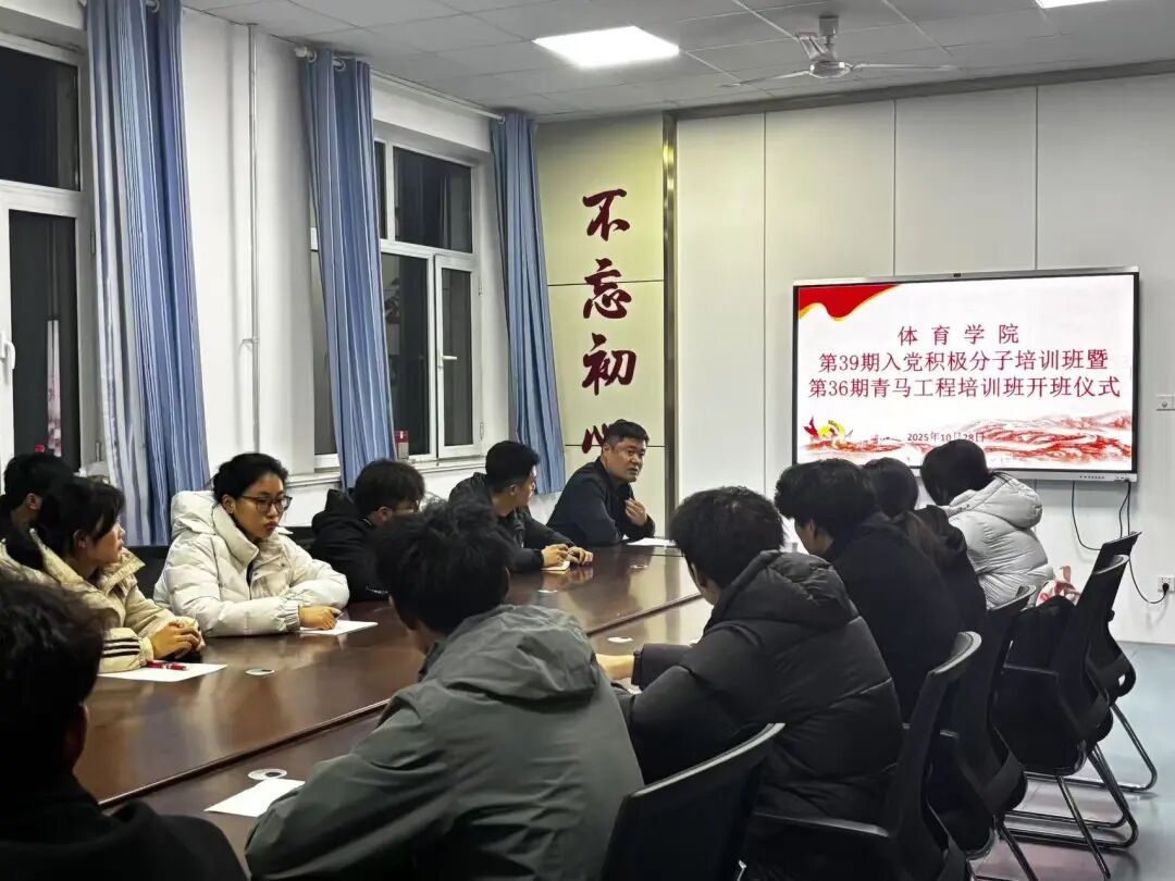 仪式上,陈明首先代表学院团委向经过层层选拔、顺利进入本期青马班的全体学员表示祝贺。他指出,“青马工程”是共青团为党培养青年政治骨干的重要载体,本次将入党积极分子培训与“青马工程”培训有机结合,旨在引导广大体育学子坚定理想信念,深化理论武装,提升综合素养。并对学员们提出三点殷切希望:一是要筑牢信仰根基,深入学习马克思主义基本原理与党的创新理论,做坚定的马克思主义信仰者;二是要坚持知行合一,将理论学习与专业实践、社会服务紧密结合,在实践中锤炼过硬本领,展现体育人的拼搏与担当;三是要严守培训纪律,营造优良学风,以高标准要求自己,确保学有所获、学有所成。