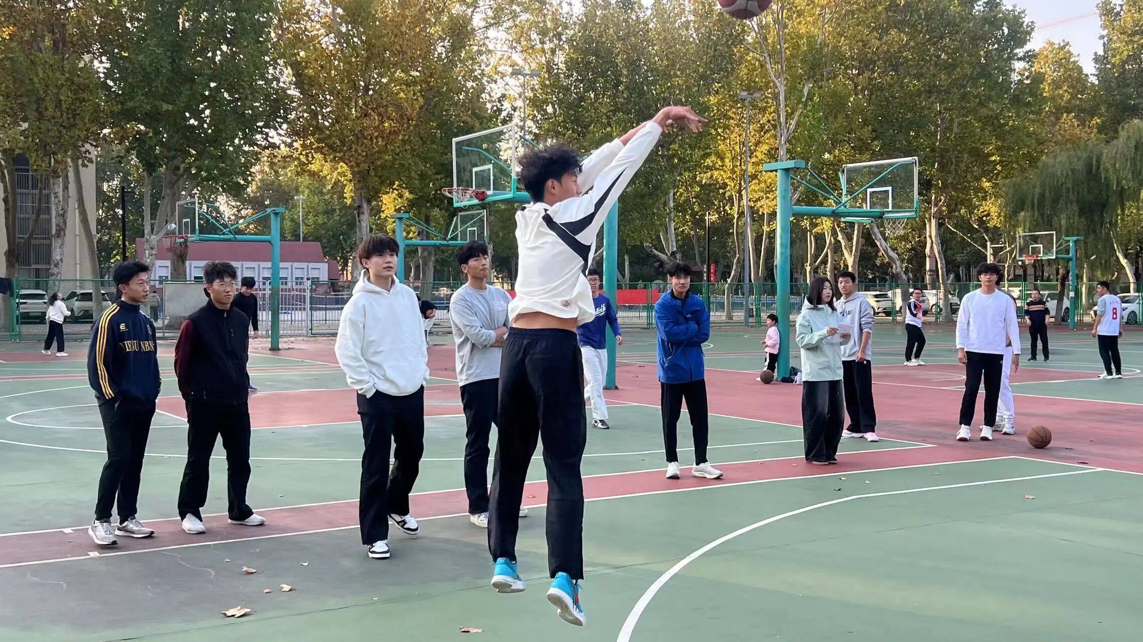 为丰富学生课余生活,点燃篮球运动热情,弘扬拼搏进取的体育精神,成人小说-c成人小说 文体部于10月26日在西校区北篮球场顺利举办“篮球三分大赛”。来自学院各年级的篮球爱好者踊跃参赛,以球会友、切磋技艺,在赛场上尽情释放青春活力。